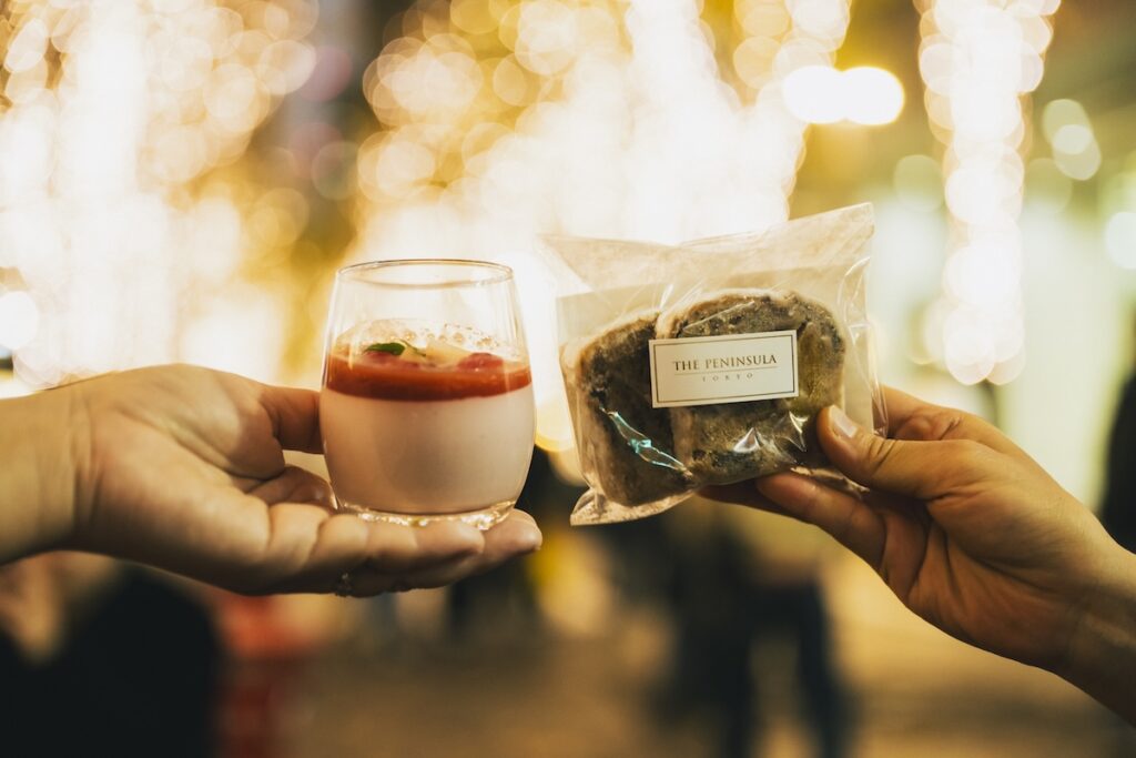 飲食では例年人気のアイテムが登場しており、特に注目されていたのは「ザ・ペニンシュラ東京」のマーケット。子どもから大人まで幅広い世代が楽しめるシュトーレンやミンスパイなどのクリスマスアイテムをはじめ、焼き菓子やホットチョコレートが提供されました。なかでも今年新登場のストロベリープリンはさすがホテルスイーツ!と唸らせる逸品。甘酸っぱいいちごソースとなめらかなプリンに笑みが溢れます。
