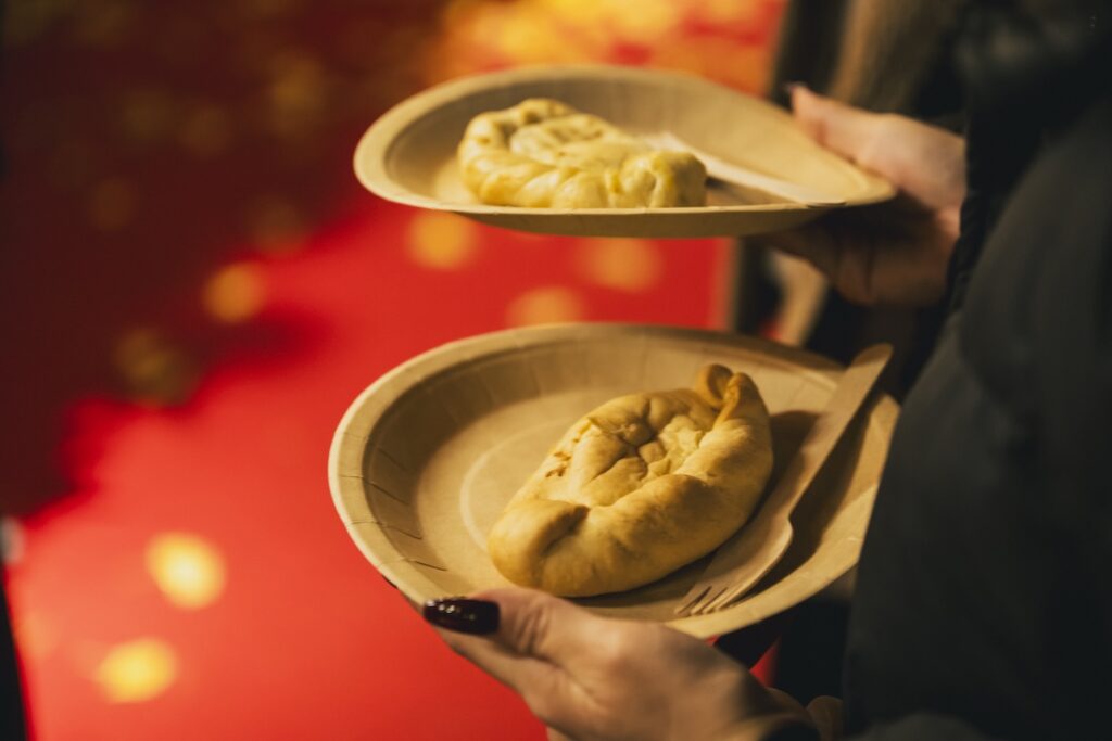 なかでも、食べ歩きもしやすい手包みピザは行列ができており、トマト&ソーセージと、スイーツ感覚でも楽しめるりんご&カスタードの2種類両方を手に取る姿も。オレンジジュースにシナモンやスターアニスの香りを移しながら煮込んだ、からだの芯から温まるホットドリンクブースも大盛況でした。